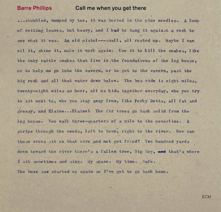 I’ve said it before, but Barre Phillips is one of ECM’s brightest stars, though one would never know it by the solemnity of his genius. Glowing with a pale fire that can be drawn only in cosmic pigments, his sound-world on Call me when you get there throbs as if Michael Galasso and David Darling had fused into a collaborative quasar. The opening “Grants Pass” would seem to have been written in the margins of Steve Reich’s Different Trains, and works its gentle magic under the toenails of our foothold. Played on resonant multi-tracked instruments, this track stands as one of Phillips’s finest. Each shade of harmonic interplay forms a new glyph before our ears and eyes, proving once again just how cavernous the bass really is. This wistful trail leads us to the “Craggy Slope,” an uneven climb into heavily eroded terrain, occasionally punctuated by the fluid twang of the waters that wrought it into existence, and ending surprisingly in an almost baroque denouement. And on that edge we linger, dancing the slow-motion jig of “Amos Crowns Barn” before following the anonymous stirrings beyond “Pittmans Rock.” But when we jump, we land on “Highway 37,” caught in a stampede of tumbleweeds. Here, the bass sounds more like a ball of twine wound around a rubbery core, expanding into some looming paternal guitar, hunchbacked from old age. “Winslow Cavern” bubbles like the molten rock of a volcano before taking shape in the aptly titled “River Bend,” which plucks and scrapes its way through a serpentine journey. And as we take shelter in “The Cavern,” we discover that the only promise of life that awaits us outside its darkness is “Brewstertown 2,” a nightmarish backcountry town with an impending tornado etched into its background.