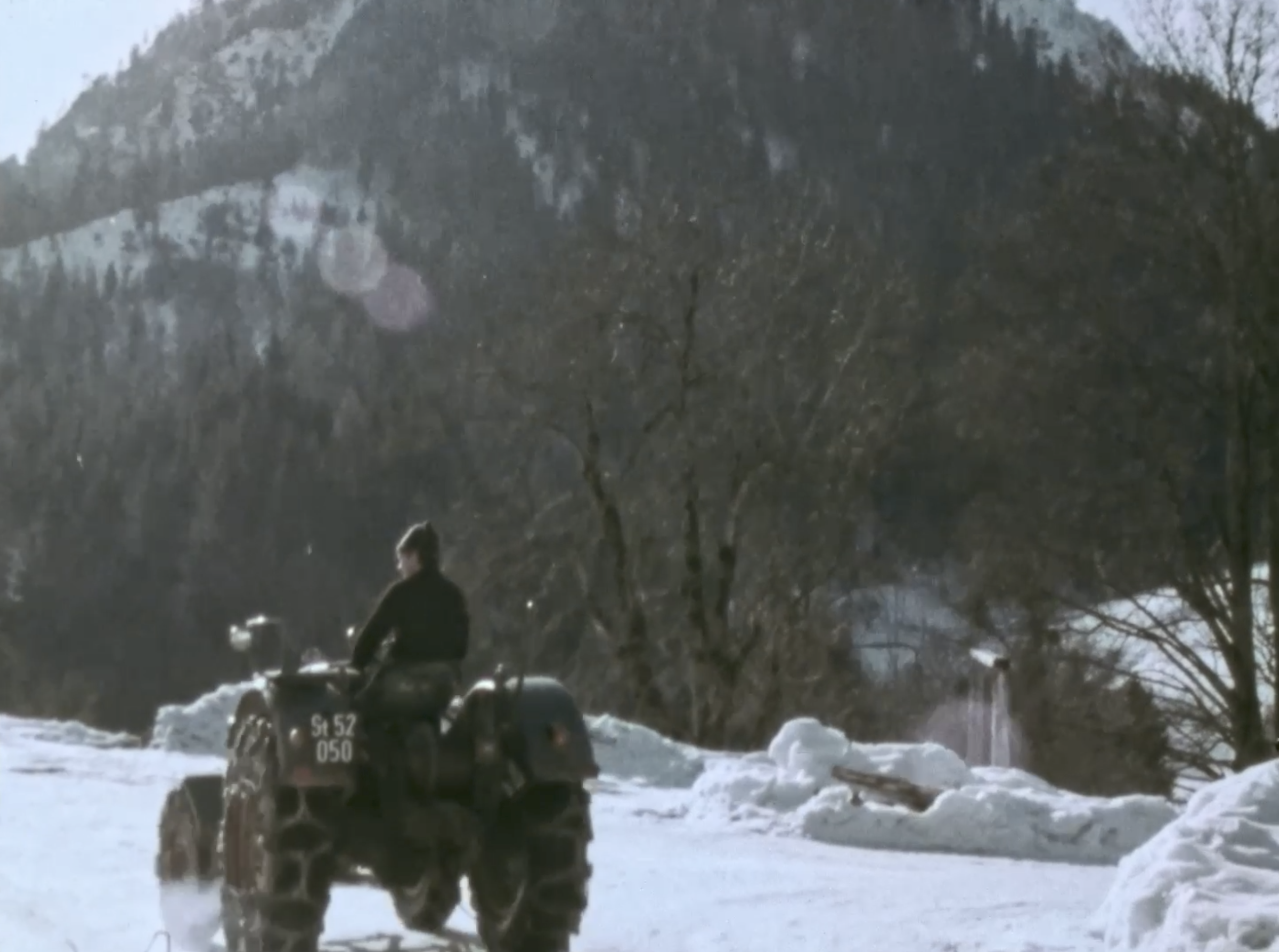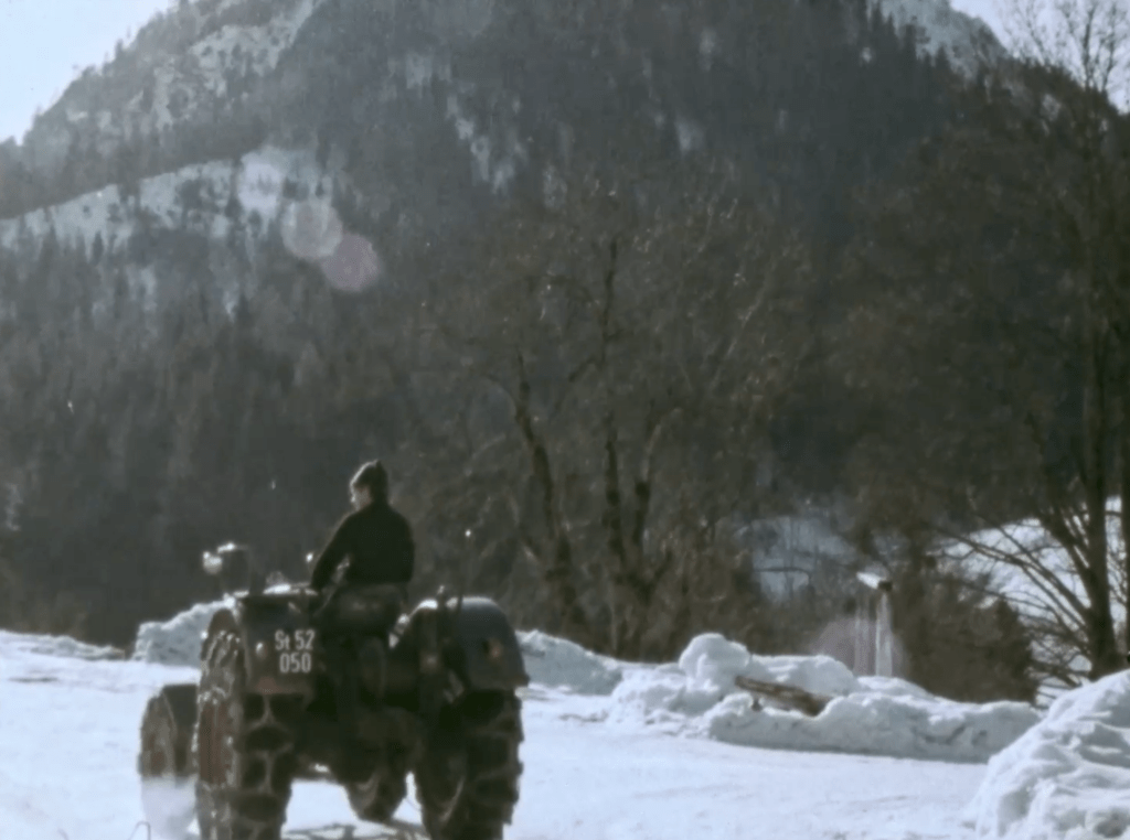 The film places her story alongside flashes of tourists who traverse the same landscape with ease and delight. Horse-drawn sleighs glide through the snow, their occupants smiling, insulated from the histories embedded in the terrain they admire. For them, the farms become postcards in motion, fragments of an aesthetic experience detached from its conditions of production. The voiceover traces the economic structures that underpin this transformation. Landlords accrue profit through taxes, tithes, and the consolidation of property. Tourism emerges as both a continuation and an intensification of these dynamics. The history of Ramsau reveals itself as a layering of exploitation and accumulation.