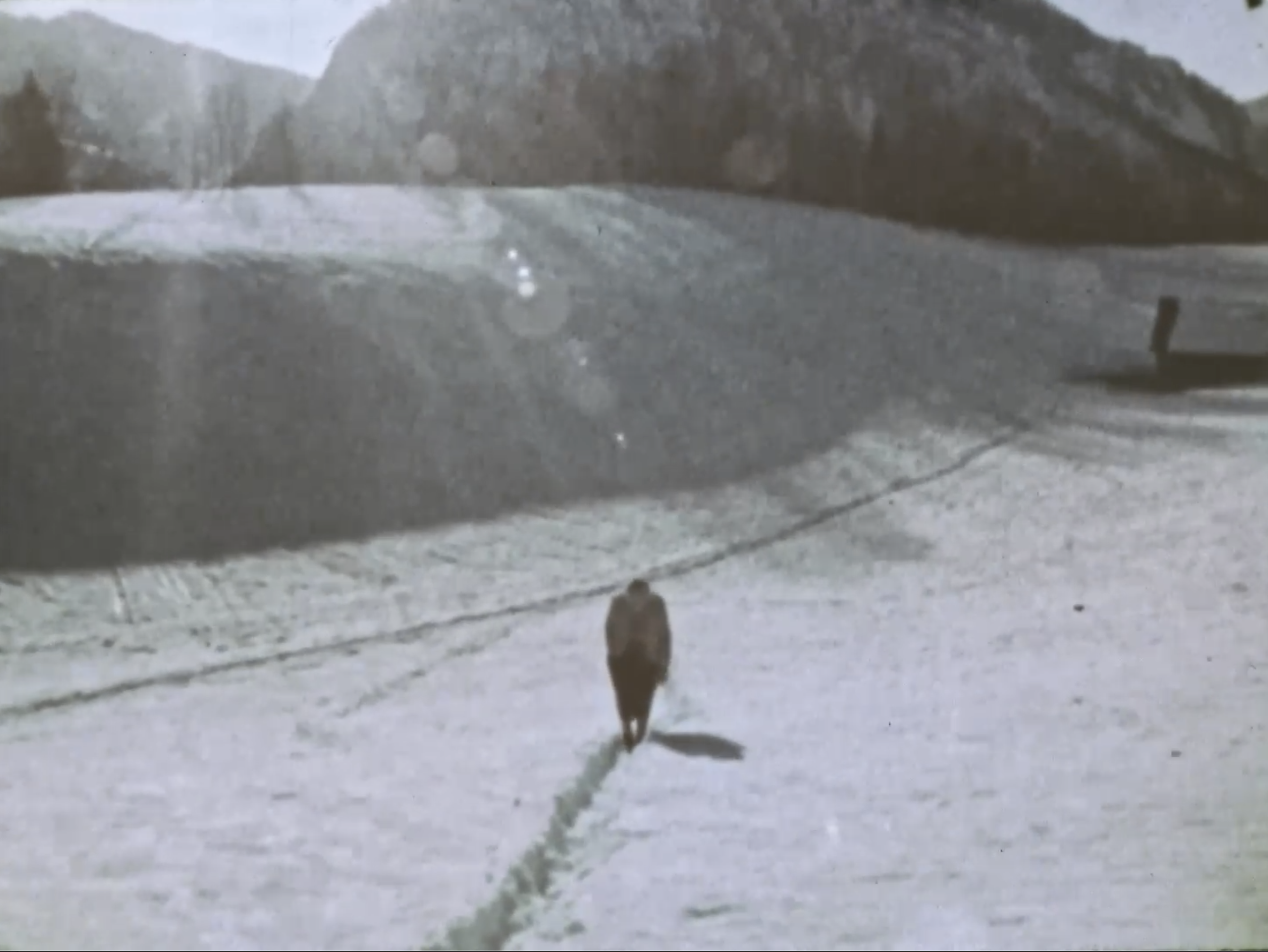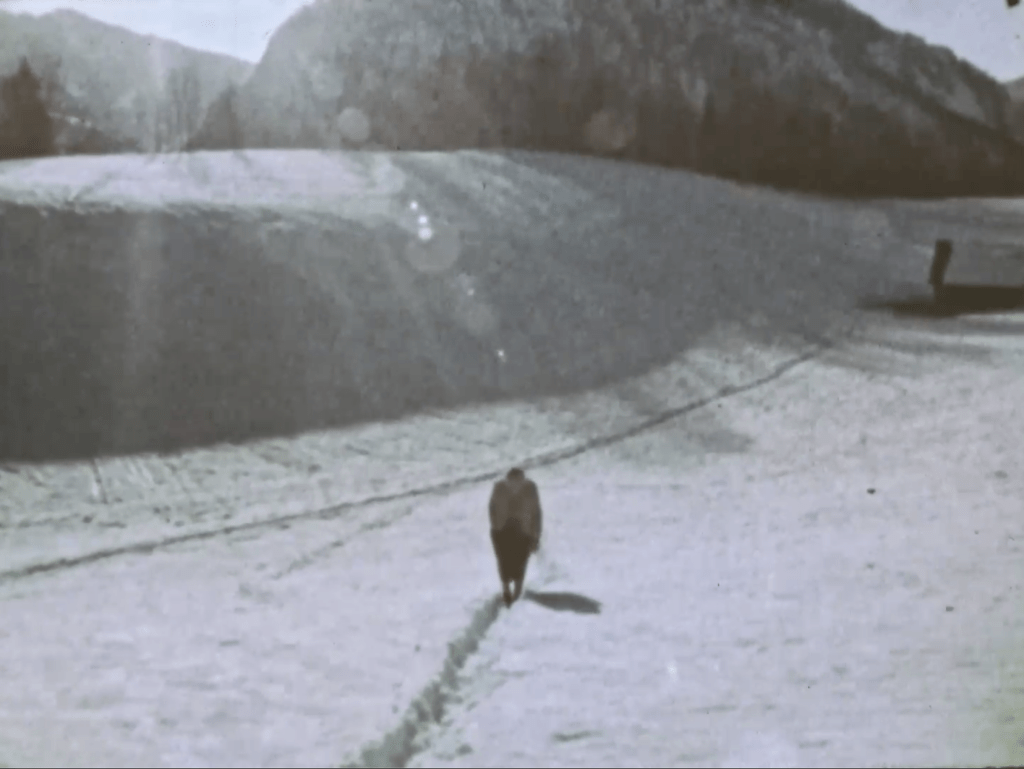 Jelinek’s later reflection on the film, articulated in her 2022 essay “Shipwreck on the Mountain,” frames the work through the lens of failure: “What I captured was not supposed to be captured.” And so, the act of capturing becomes both transgression and necessity. The film records what resists representation, what eludes the frameworks designed to contain it. In doing so, it exposes the frayed edges of those frameworks. Her characterization of the project as a shipwreck suggests collapse, yet also preservation. A shipwreck disperses fragments across a landscape, each piece retaining traces of the whole while existing independently. The film functions likewise. It resists closure and remains open to reinterpretation, continuing to generate meaning through its unresolved tensions.