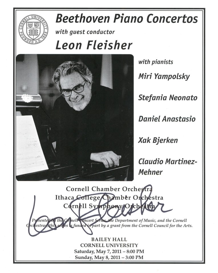 Below is my review of two recent concerts led by Leon Fleisher under the title of the “Beethoven Concerto Project” at Cornell University’s Bailey Hall, May 7/8, 2011. The full interview excerpted therein follows.