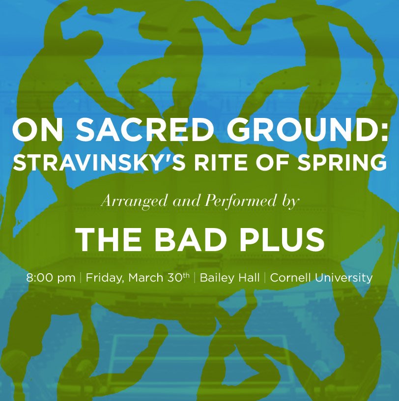 As a reviewer, my job is twofold: 1) to introduce artists to those who may not be familiar, and 2) to wax informative on the art they bring to studio or stage. The latter comes naturally. The former is where my pen begins to drag. Sure, I can mosey on over to any number of online bios and tell you that bassist Reid Anderson, pianist Ethan Iverson, and drummer Dave King—known collectively as The Bad Plus—have been wowing the discerning listener since the group’s 2000 redux. Sprung from the bedrock of Minneapolis (with Iverson’s biographical thread stretching back to neighboring Wisconsin), TBP lay their matches to a wealth of fuses, including a heaping portion of group originals and a smattering of enticing sidelines drawn from the popular canon. TBP now bring their latest project, “On Sacred Ground,” a reimagining of Igor Stravinsky’s The Rite of Spring, to Cornell’s Bailey Hall.