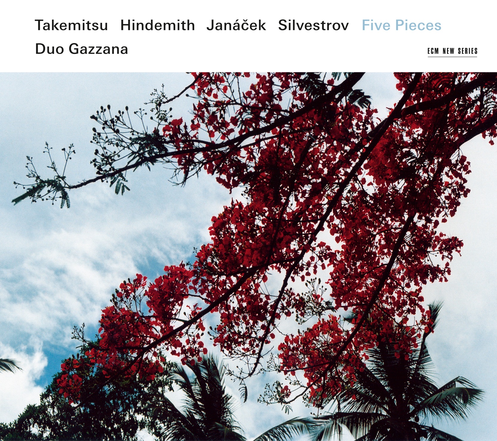 Thanks for calling it “refreshing”! We liked the idea of proposing pieces not so often played, excluding perhaps the Janáček sonata. This became possible with the ECM label, which generally offers its listeners “unusual” music. We particularly enjoy playing all the pieces in this program, and each has its own reason for being on the CD. While Janáček and Hindemith were part of our usual repertoire, we encountered Takemitsu relatively late. We came to know Silvestrov’s music through the several ECM recordings that Manfred Eicher encouraged us to listen to. We were immediately captivated by his delicate and evocative writing.