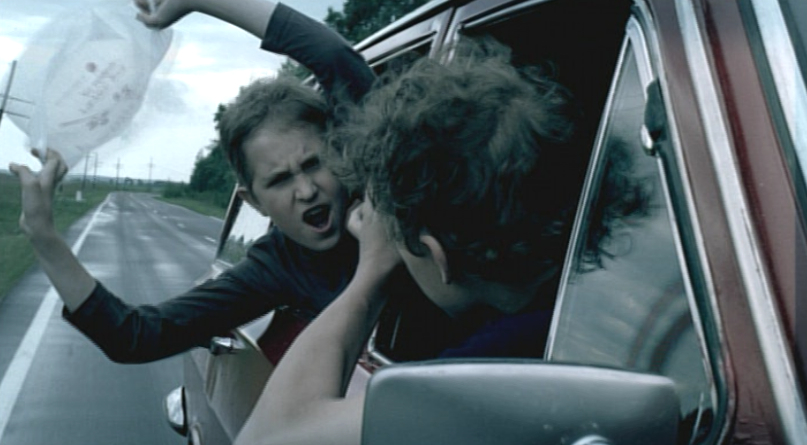 Drive. Splash of pastoral color bleeds like a wound. Ivan abandoned, alone with his rods and tackle in a downpour. “Why did you come back?” he cries. “You don’t need us.” Father is a survivor. He hits Andrei.