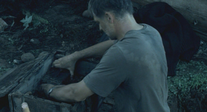 Crossing. Tarred boat, passage of joy. Engine dies, elbows worked to the fulcrum. On the shore, by the fire, the man is downtrodden. Ivan: “If he touches me again, I’ll kill him.”