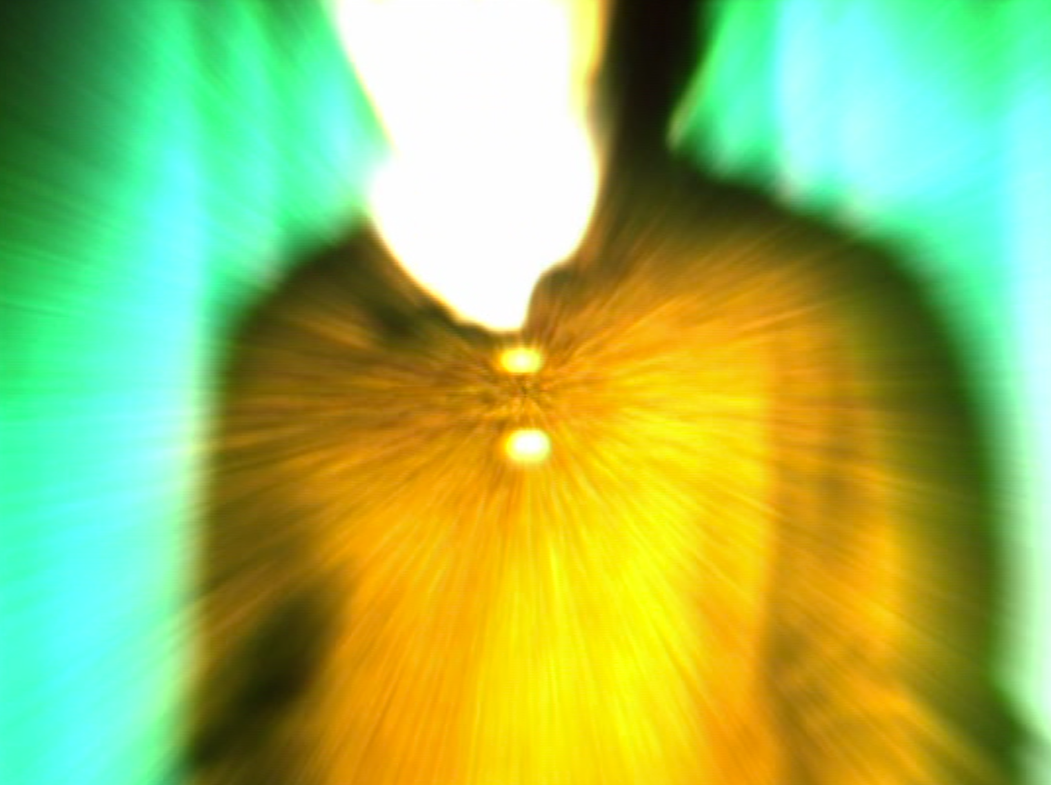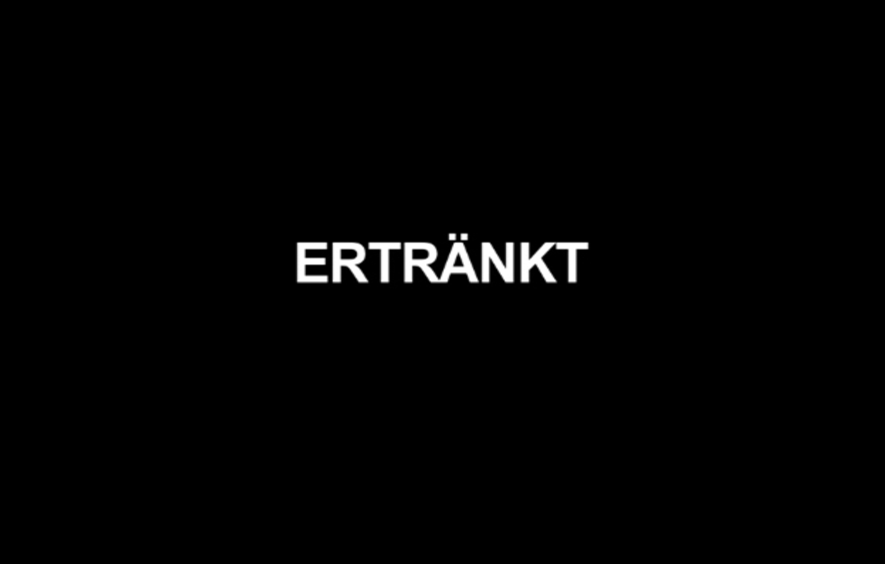 This shift from the microscopic to the elemental reappears in Übung (Exercise), where a figure is thrust toward the camera, lit as if by an emergency sign from within. Strobes slide across sweat and skin until the figure becomes particulate, edging toward ash. Schwarzensee repeats the experience through landscape: bands of colored water glide past while the creak of a rowboat grounds the abstraction in human effort.