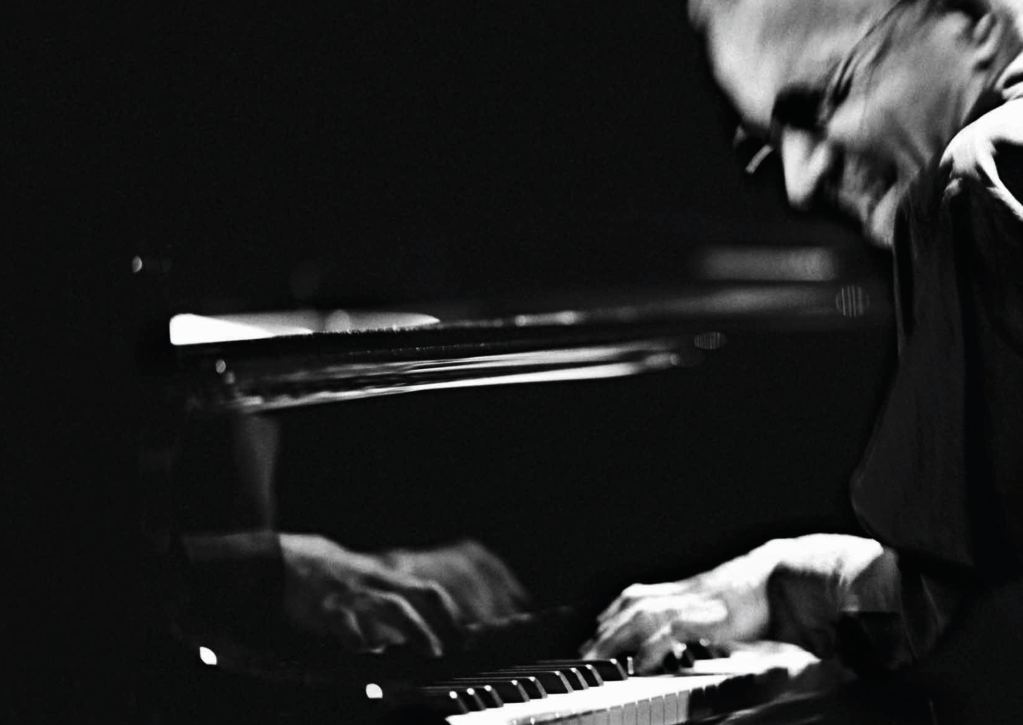 Taken together, the images chart Jarrett’s evolution from a fiercely expressive sideman in the orbit of Miles Davis to an increasingly enigmatic figure, and finally to a singular presence in solo improvisation. Yet the photographs resist narrative closure. They do not resolve into a story so much as a constellation of states. Among them, one image stands apart. It is the second one above, where Jarrett’s face appears refracted in soft color, suspended between clarity and dissolution. Masotti, a photographer of formidable technical command, rarely indulged in overt manipulation. Here, however, he allows the image to drift toward the spectral. The effect is restrained yet profound. It touches something central to Jarrett’s music, its simultaneous rootedness in the physical act of playing and its persistent reaching beyond the self. The photograph carries within it a residue of sound, an afterimage of music that seems to hover just beyond reach.