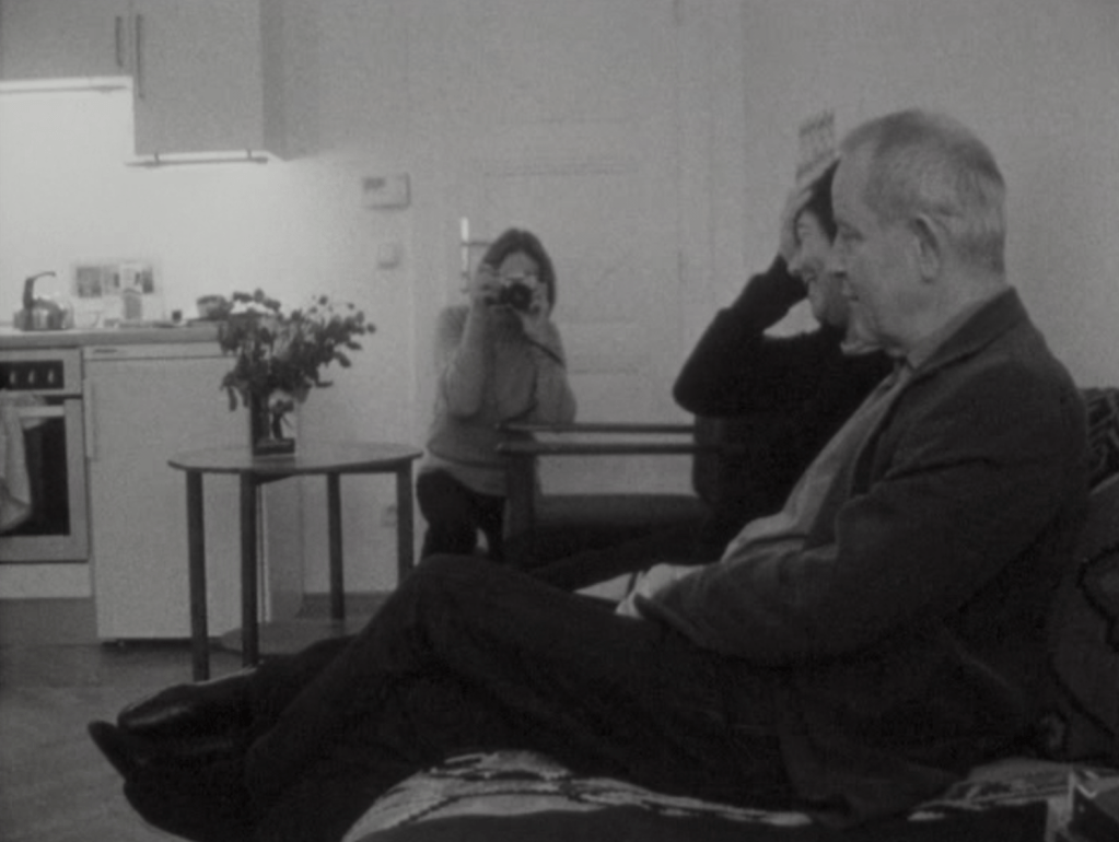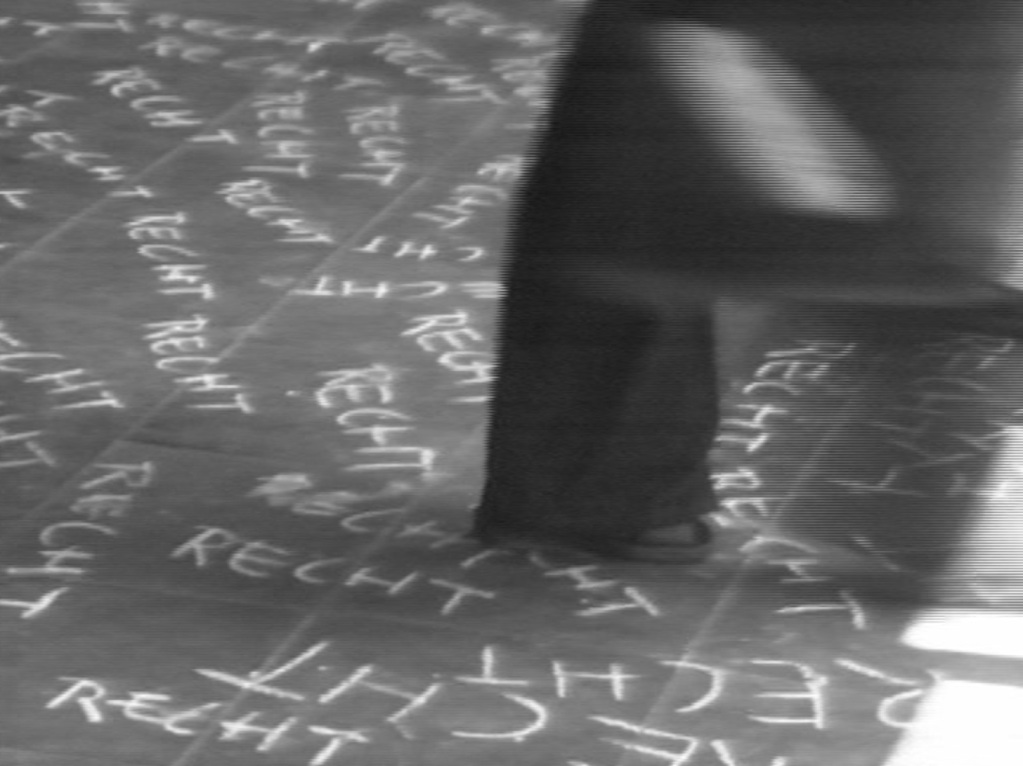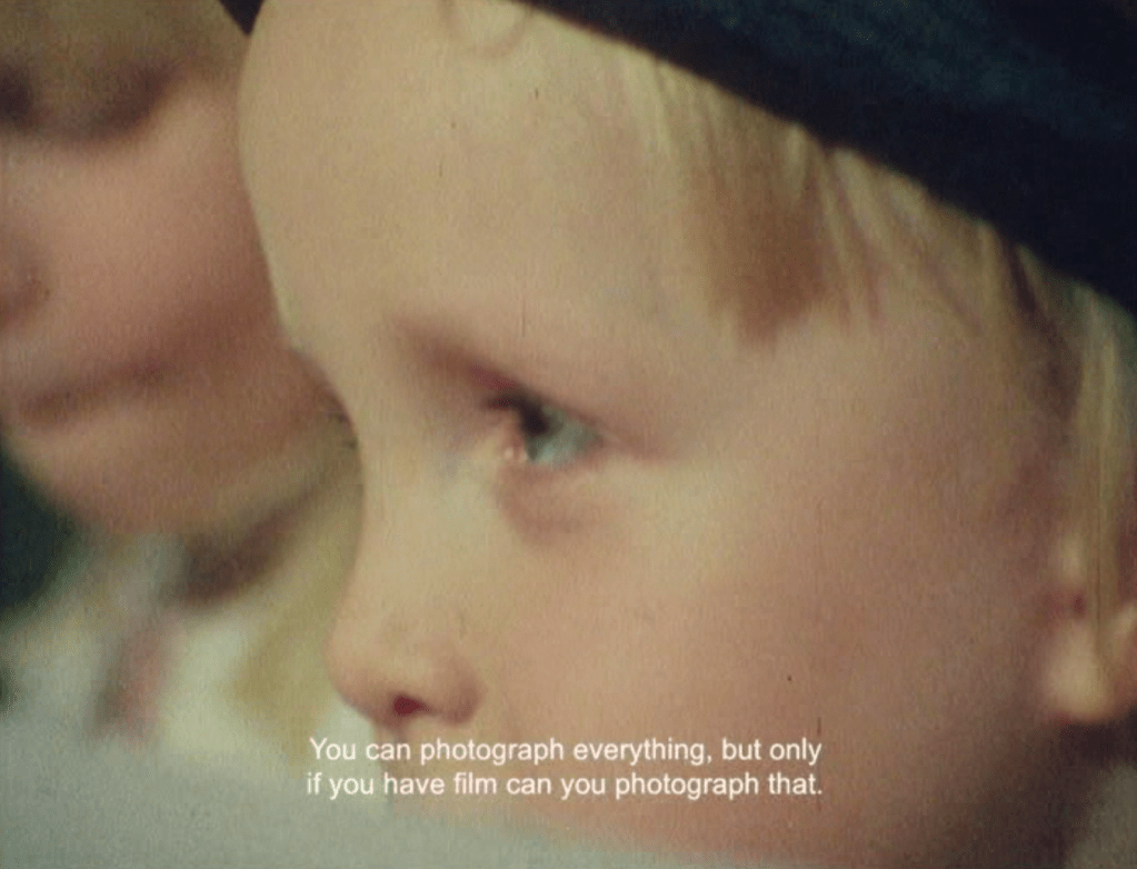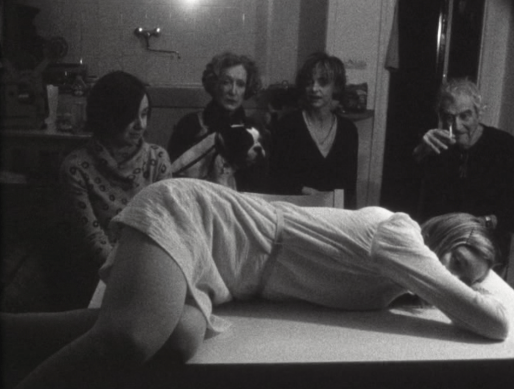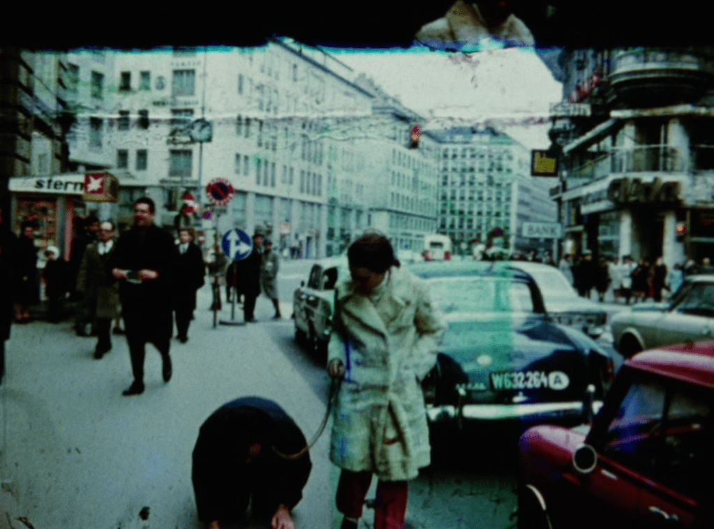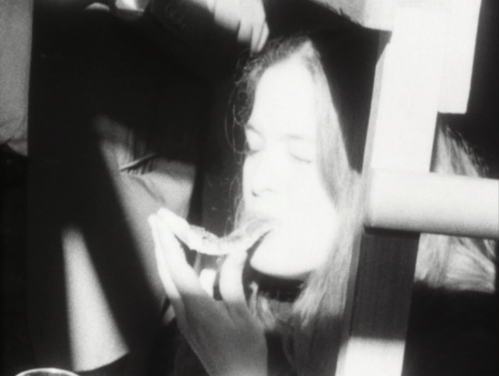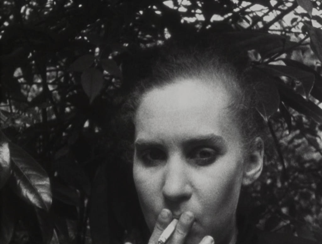The domestic sphere proves no safer. Vollmund (Full Moon) frames eggs frying, cigarettes burning, Coke bottles bending, and a child’s cheerful “Let’s go,” all glimpsed through a circular aperture that turns the mundane into a pupil of surveillance. In Basis pH, the application of makeup is a study in exposure rather than beautification, as if each gesture were removing a layer of self-protection rather than adding one. It’s the private act as uncertain confession.