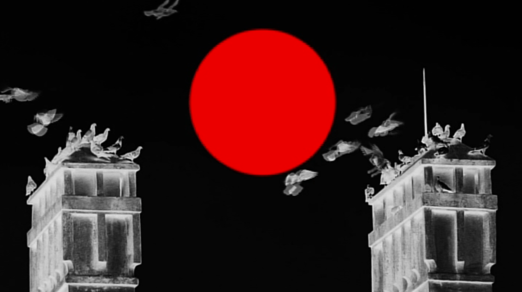 As chronology grows, so does the gentility of Brehm’s touch. Licht (Light) is a standout in this regard: a hand caresses a lampshade again and again in a manner so tender that it borders on obsession. Sonne Halt (Sun Stop) freezes the sun between two towers as a red circle that pins luminosity to the board of life without extinguishing it. Cocktail shifts into a reflective register as Brehm diverts focus to his layered image, jazz sketching itself in the background.