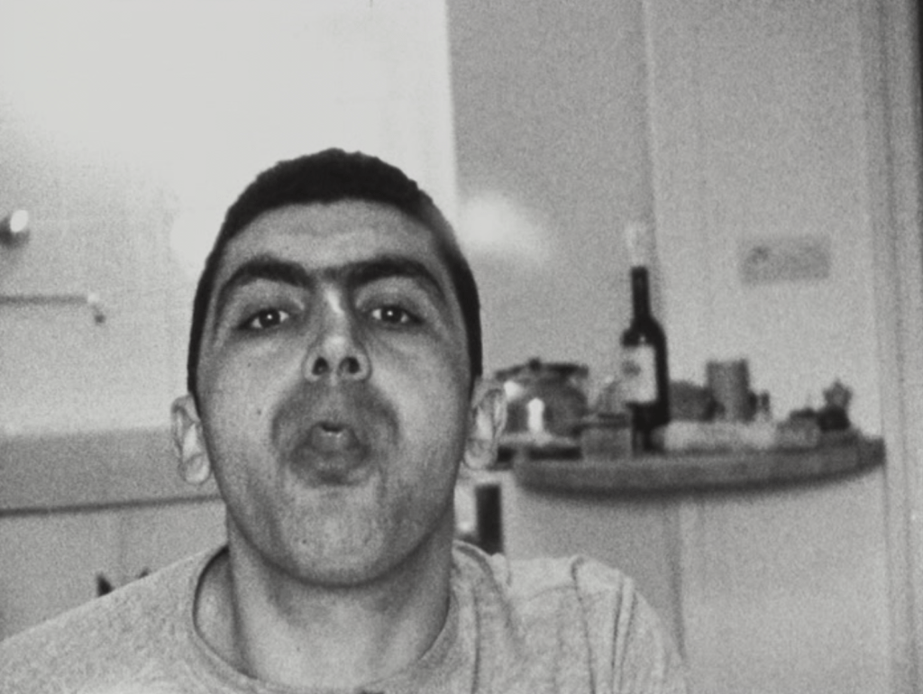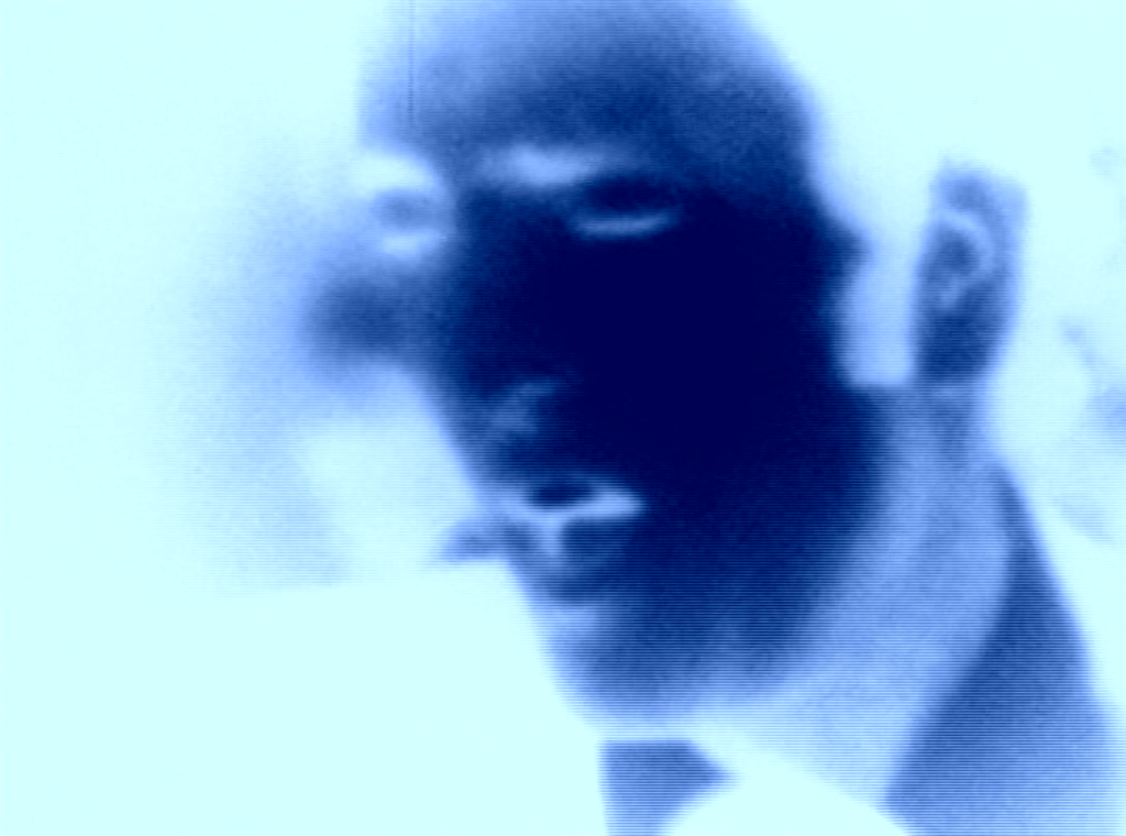 Self-portraiture assumes the identity of a malfunction. Chesterfield shows Brehm flickering beside a car while a metronome hammers machinically. In Charles, a drained, remorse-free face is doubled by a twin that never quite aligns, enacting a moral vacancy. Röntgen (X-Ray) meshes screaming vocals with inverted faces and vehicles in a radiographic exorcism. Such pieces insist that identity is not a stable referent but an affectation that appears only when stressed, inverted, or pulled apart.
