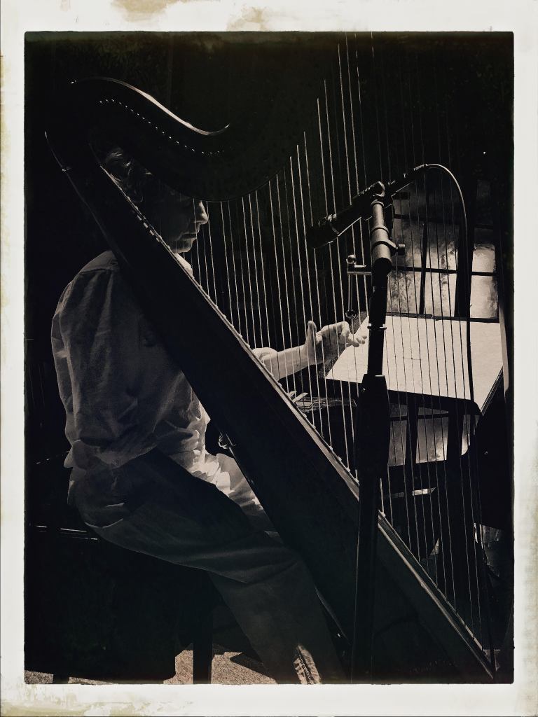 In light of this historical awareness, Parkins reflects on her beginnings as an artist as follows. “I was myopic then in thinking about the future, just living in the moment. Growing up with an immigrant father and a first-generation mother, I was encouraged to be practical, to be good in school, to do music on the side but focus on a career. But I just wanted to be in the world of music, to be surrounded by a community of musicians, to hear things I’d never heard before. I wanted every experience.” Under the current circumstances, one would be remiss to ignore this motivation. The need for community seems to have grown in proportion to the world’s tendency to fall down the rabbit hole of isolation. Such concerns were already on Parkins’ mind before the pandemic, when questions of safety and practicality prevented her from touring with the electric harp. The mindset of quarantine rekindled her relationship with the instrument. With the help of her partner, filmmaker Jeff Preiss, she began shooting solo performances as a means of reaching out. As she sees it: “You put a recorder up and instantly it’s more than just you in the room.”