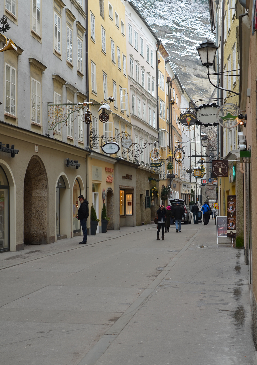 Salzburg’s main street was consolation in architectural form, a narrow embrace for the chilled. People wandered in and out of shops—some with bags, most without—and kept their eyes open to every color change.