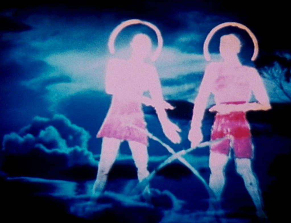 Running Sushi (2008) flings its protagonists into a pop-inflected, manga-tinged Eden that reimagines domestic life as a conveyor belt of images and half-digested memories. Stephanie Cumming and Johnny Schoofs inhabit a cartoonish household powered by manic whimsy. Eve eats an orange peel whole, every scrape and chew amplified with grotesque clarity. Adam recoils from behaviors he cannot explain and hyperventilates himself into animality. Their conversations veer from banal domestic choices, such as what color to paint the kitchen, to sudden eruptions about sexual assault and the enslavement of domestic expectations. Yet the film refuses tragedy. It vacillates between slapstick and trauma, between whispered tenderness and squeals at their own nakedness. The appearance of Eve’s chopstick-wielding alter ego, puncturing the veneer of calm, is an eruption from a psyche with a backstage pass. The two end on the floor, singing to a ukulele, a moment of fragile equilibrium in a world where even sincerity feels like performance.