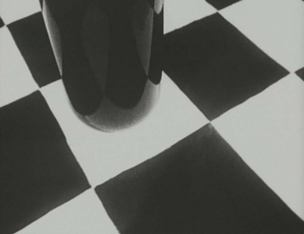 Mattuschka’s fascination with systems culminates in Pascal-Gödel (1986), a meditation on the union of numerators and denominators. Mimi plays chess on graph paper against her own negative double. Wine pours and reverses with melodramatic impossibility. Ink seeps across the board, thought overrunning form. Silence becomes the only language capable of holding such an equation.