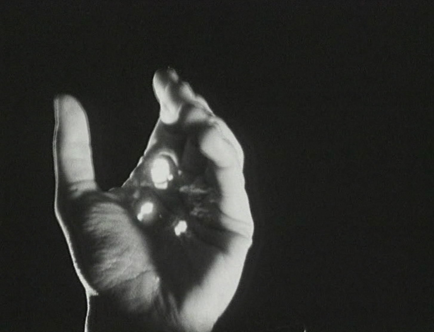 Collisions of narrative and its ruptures intensify in Outer Space (1999). Drawing on fragments from a Barbara Hershey horror film (1981’s The Entity), Tscherkassky constructs one of the avant-garde’s most unnerving works, where “the actress reacts to the material, the material doesn’t react to her.” Blackness engulfs the frame, broken only by flares and spots that reveal slivers of a house, a corridor, a woman wandering as though trapped inside the filmstrip itself. Her identity splits and multiplies; she receives premonitions from her own fractured image. The film becomes her tormentor—scratching, overexposing, ripping at her body—until even the soundtrack slips violently off its optical track. When she lashes out toward the screen, it feels like an assault on the viewer, as though she were trying to shatter the membrane between image and spectator. She fades into shadows of shadows, a ghost of the medium that birthed her.