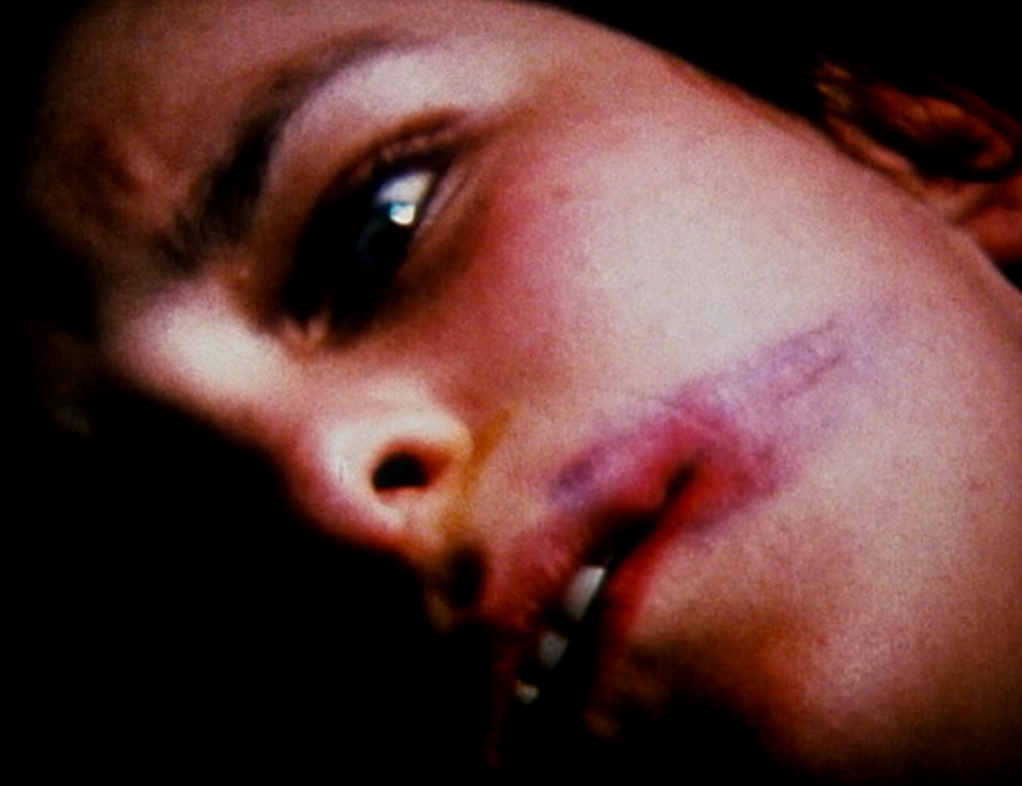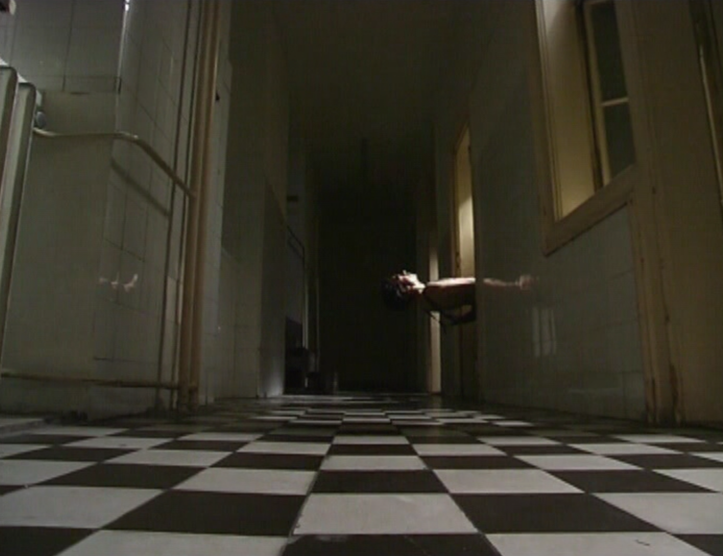 This diagnostic instinct reaches its clearest form in Exposed (2001), one of the collection’s strongest works. A man peers at a woman through a keyhole, a simple voyeuristic setup unraveled by repetition and sound. The woman’s body trembles into abstraction as the distorted breath returns. Desire becomes surveillance, and surveillance becomes a wound. When the woman is finally revealed openly, smoking and unguarded, the image lands as a quiet indictment of the gaze that preceded it.