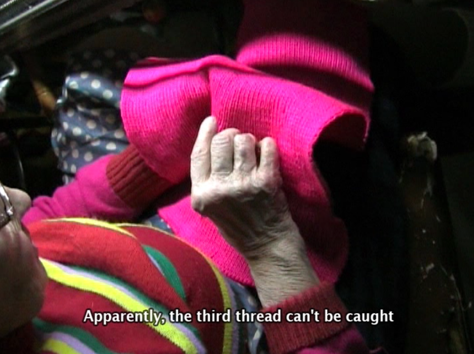 Karol Radziszewski’s Fag Fighters: Prologue (2007) imagines milder forms of insurgency through craft turned militancy. An elderly woman knits pink yarn, which feeds into a machine that produces a vivid scarf, which in turn serves as the material for a ski mask. The mask is a tool for queer resistance, equal parts protection and provocation. Thus, domestic labor is reclaimed as an armament for a fantasy army that refuses invisibility.