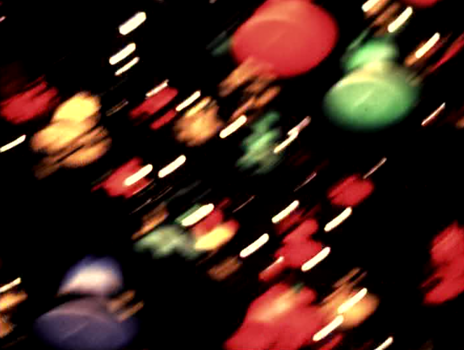 Finally, Lights (1964-66), assembled from three consecutive years of filming New York’s Christmas displays between midnight and one in the morning, may be her signature work. It is whimsical, electric, and full of delight yet grounded in an adult awareness of the city’s mingled magic and melancholy. Its frenetic sparkle becomes a translation of Menken’s spirit, playful and restless yet deeply alert.