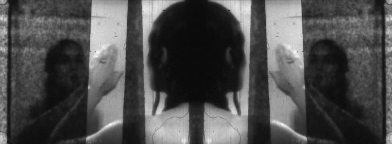 The recursive logic deepens in Mirror Mechanics (2005). A woman wipes a mirror again and again, her reflection fracturing into drifting geometries. The repetition recalls Martin Arnold’s compulsive loops and Peter Tscherkassky’s optical detonations, yet Fruhauf’s tone drifts toward melancholy rather than rupture. Images of the woman floating in water or running along a beach fold into themselves like psychic diagrams. She remains surrounded by a closed circuit of glances, trapped within the mirror’s ongoing self-examination.