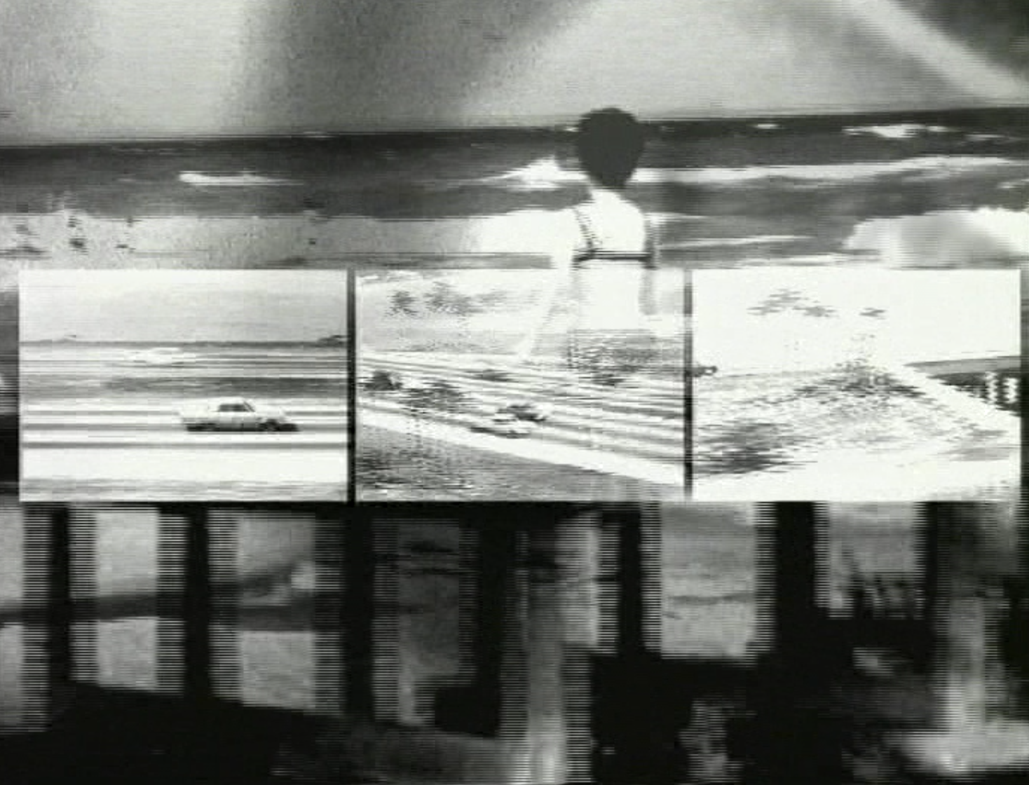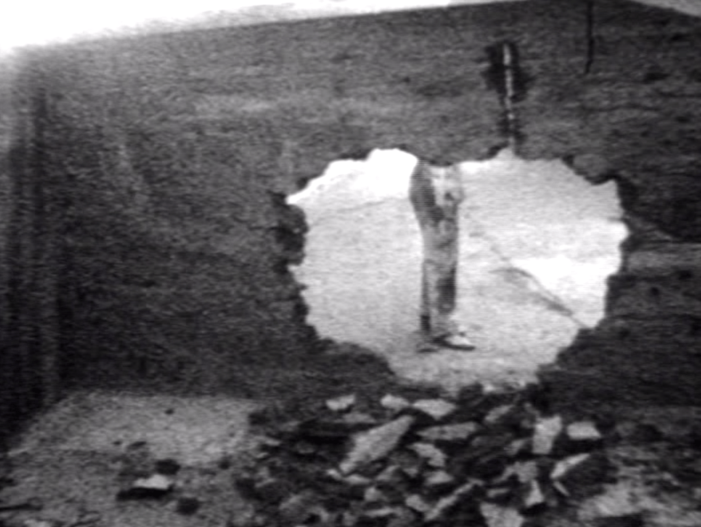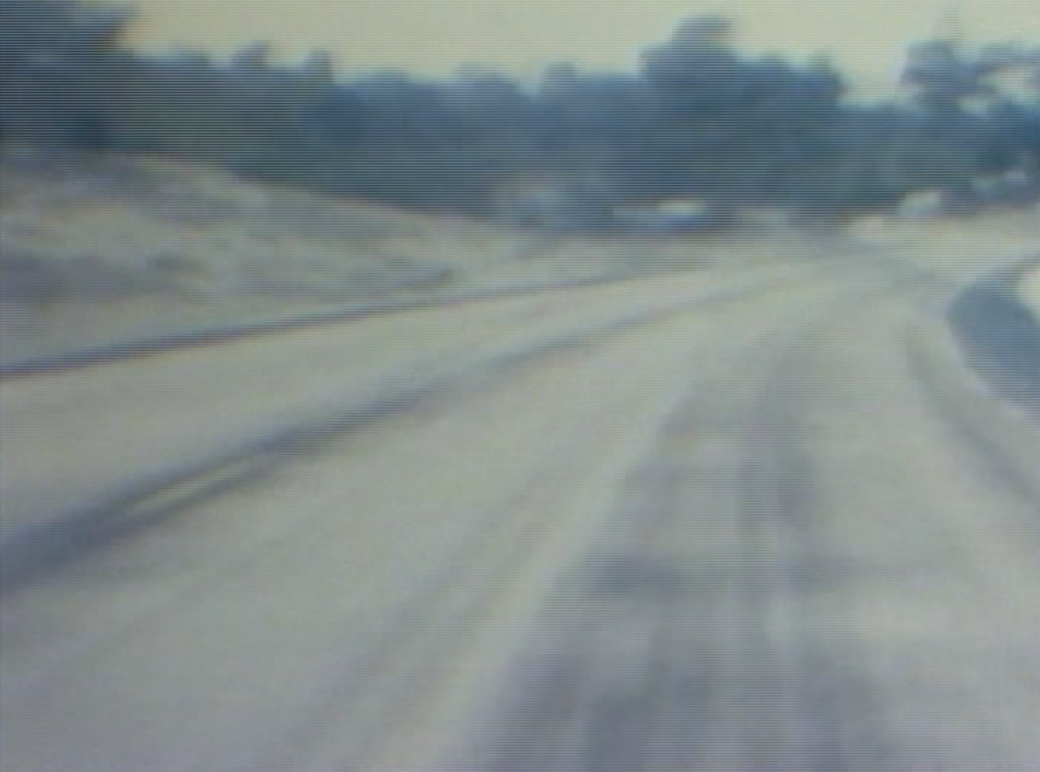 The collection’s 1981 title film transforms a road trip from Vermont to California into a consideration of anonymity. Black and white reduces the vast landscapes to a kind of near-nowhere, stripping specificity from cars, mountains, and the ocean. The camcorder aesthetic confers a strange doubleness: Kren is both present and passing, lost in a journey that offers no arrival. 40/81 Breakfast im Grauen watches workers dismantle old houses in New Hampshire, noting the fragility of rest amid destruction, while in 42/83 Getting warm, a move to Texas becomes a chain of waking moments, tire changes, night-day shifts, and survival rituals.