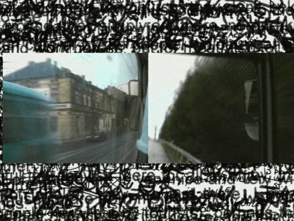Kren condenses the autobiographical reaction to its barest possible form in 42/83 No Film, which records a few seconds of motionless writing. Other works lean toward spectral reproduction, as in 43/84 1984, where the Reagan–Mondale debate appears ghostly and doubled. 44/85 Foot’ -age shoot’ -out blends Houston’s skyline with Morricone’s Once Upon a Time in the West, the camera’s obsessive returns to a hotel door evoking the ache of interior escape, before collapsing into a vision of suburban grass that feels meticulously maintained yet devoid of meaning. Even his Viennese advertisement, 46/90 Falter 2, finds brilliance in the velocity of subway commuters. Finally, 50/96 Snapspots (for Bruce), filmed at Vienna’s Strauss monument, exposes tourism as a ritual of self-making, photographs flickering into motion as if caught between stillness and performance.
